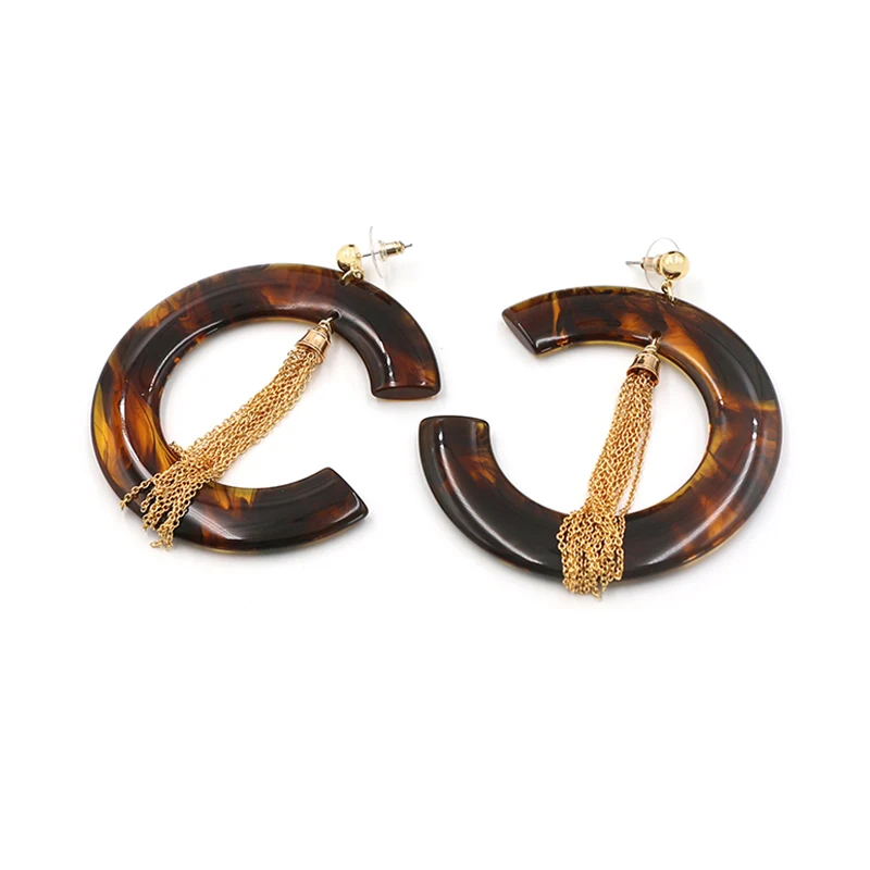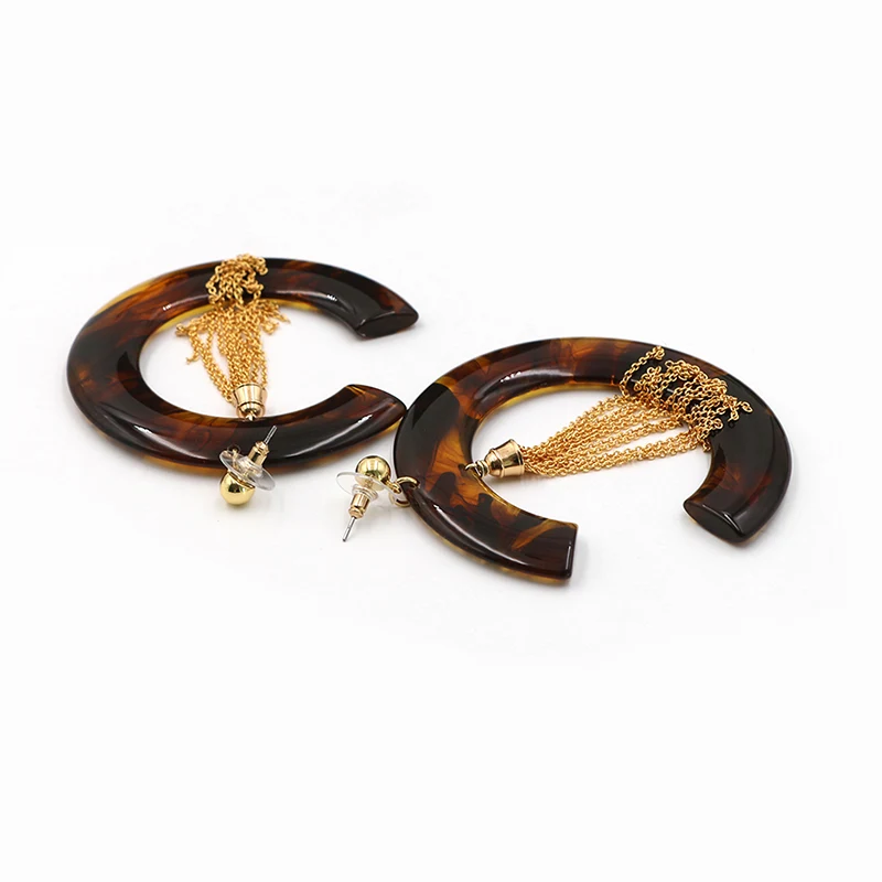C de forme acétate avec boucles d'oreilles à chaîne de gland