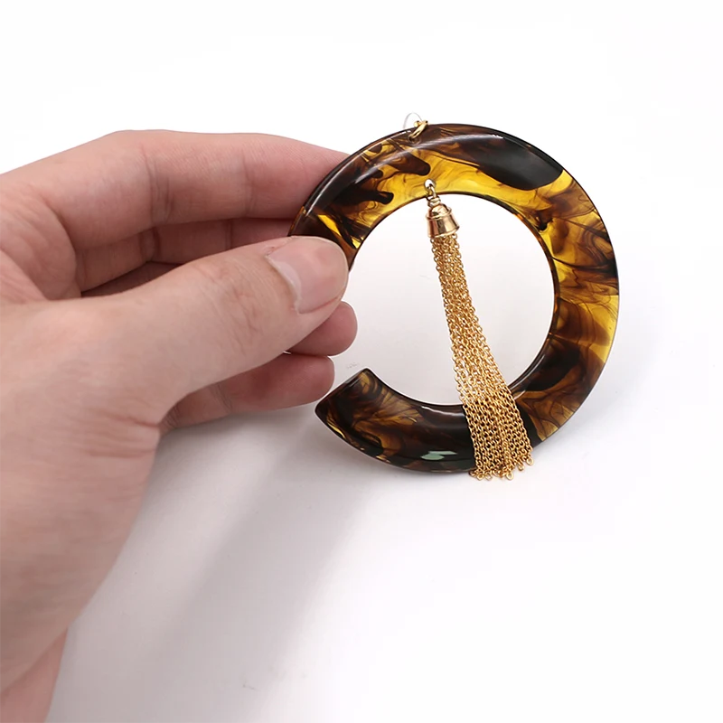 La combinaison pour l'acétate de forme C avec des boucles d'oreilles à chaîne de gland d'un acétate en C et des boucles d'oreilles en chaîne de glands métalliques est vraiment pleine de sens du design! L'élégance rétro de l'acétate et l'agilité des glands métalliques entrent en collision les uns avec les autres, présentant une personnalité et un charme uniques.