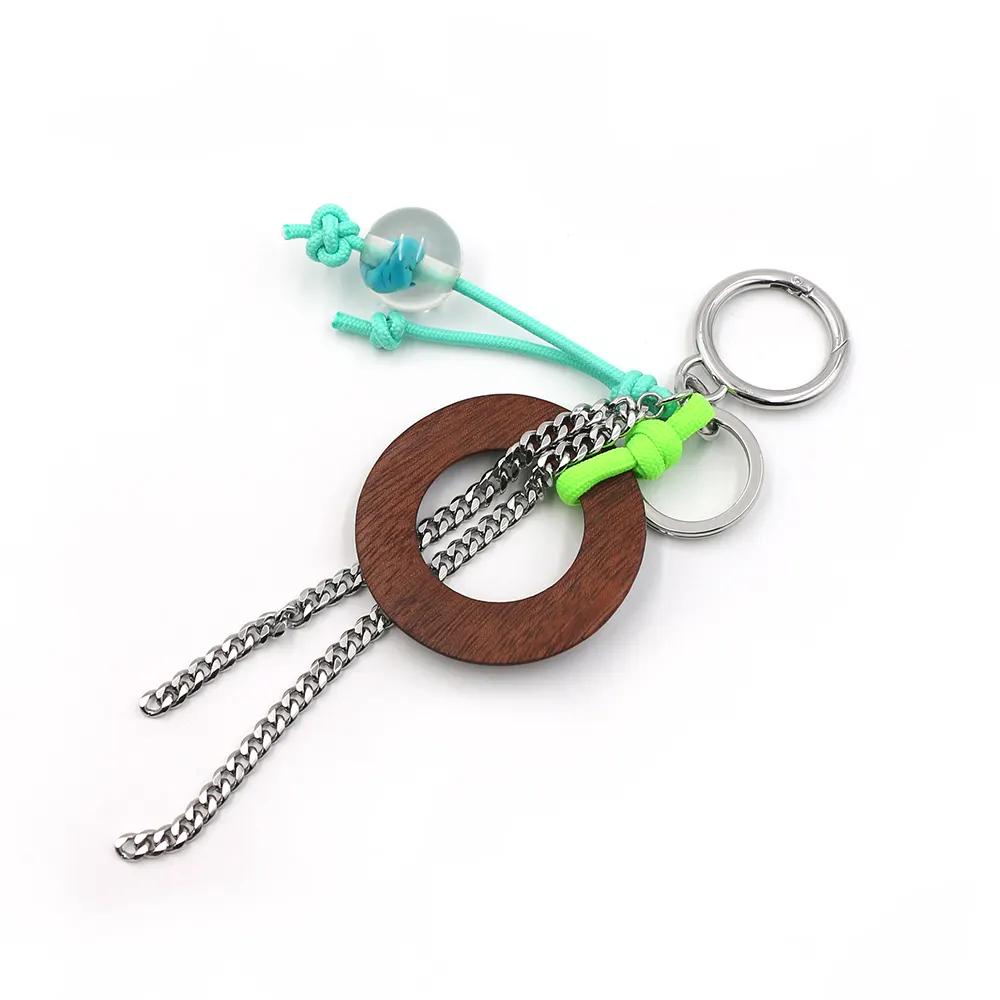 Ce porte-clés rond turquoise est conçu avec un simple anneau en bois comme partie principale, et est assorti d'une chaîne intelligente à double argent, ajoutant un sentiment de désinvolture. Le nœud frais et la bague en métal sont connectés, qui est chic et délicat, et la perle ronde turquoise enveloppée dans une résine transparente est la touche finale, aussi claire que les gouttes de rosée dans la forêt.
